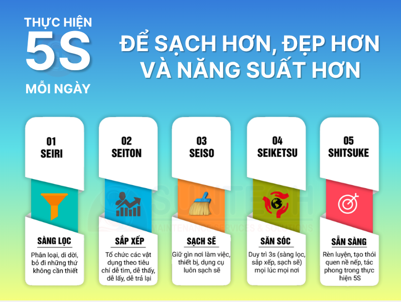 - Tổ chức đánh giá chéo (Audit) và khen thưởng định kỳ để duy trì thói quen (S5).