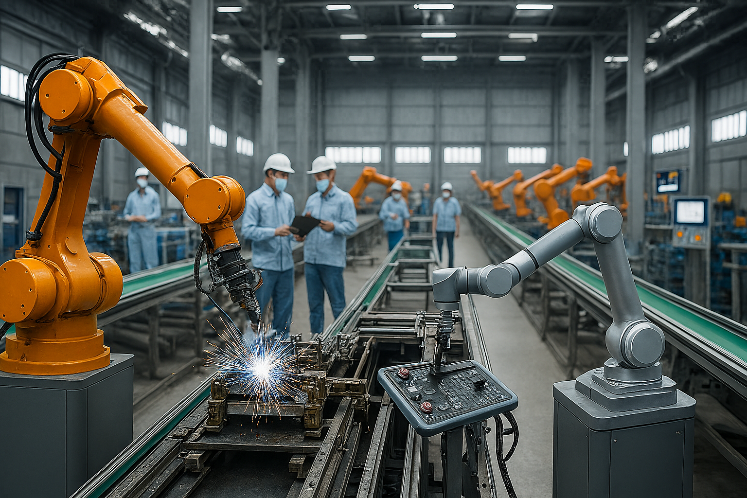 🔹 3. Sản xuất – khi con người và robot cùng làm việc
