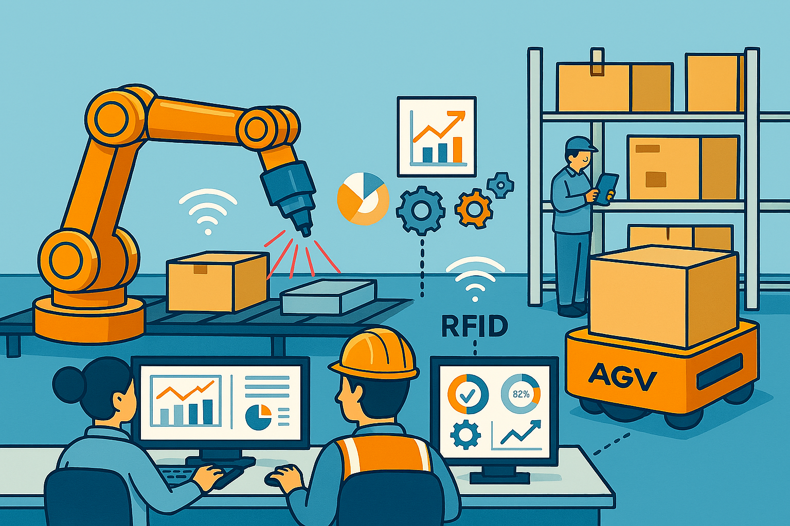 Một ngày làm việc ở nhà máy bắt đầu từ kho vật tư. Khi xe hàng vừa lăn bánh qua cổng, hệ thống RFID và camera quét tự động đã nhận diện từng kiện hàng, ghi lại thời gian, mã lô, hạn sử dụng, và đồng bộ ngay lên hệ thống quản trị trung tâm.
